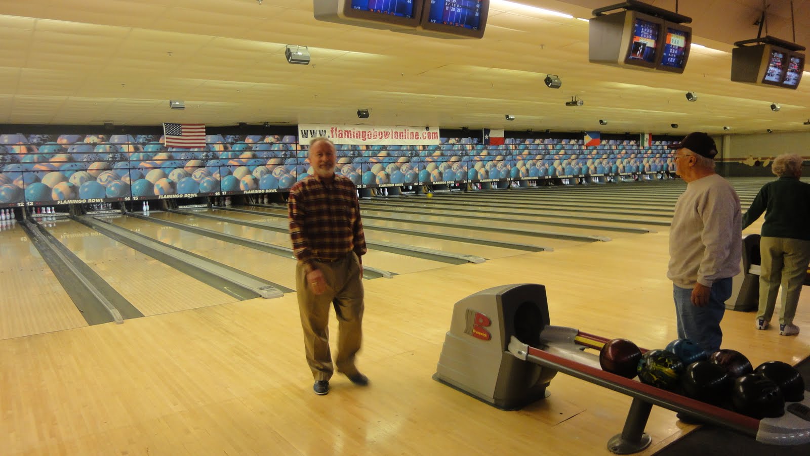 - bowling at noon at the Flamingo Bowl (see pictures)